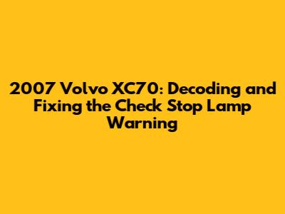 Hey everyone! Ever seen the dreaded "Check Stop Lamp" message pop up on your 2007 Volvo XC70's dashboard? It can be a real head-scratcher, right? This seemingly simple warning can be caused by a bunch of different things, and it's super important to figure out what's going on. After all, your brake lights are crucial for safety – they let everyone else on the road know when you're slowing down or stopping. So, if you're seeing this message, don't ignore it! In this guide, we'll dive deep into what the "Check Stop Lamp" message means, the most common culprits, and how you can troubleshoot and fix the issue. We'll cover everything from simple bulb replacements to more complex electrical gremlins, and give you the knowledge to get your XC70's brake lights working perfectly again. Let's get started and make sure you and your loved ones are safe on the road!