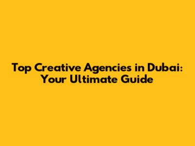 Top Creative Agencies In Dubai: Your Ultimate Guide
